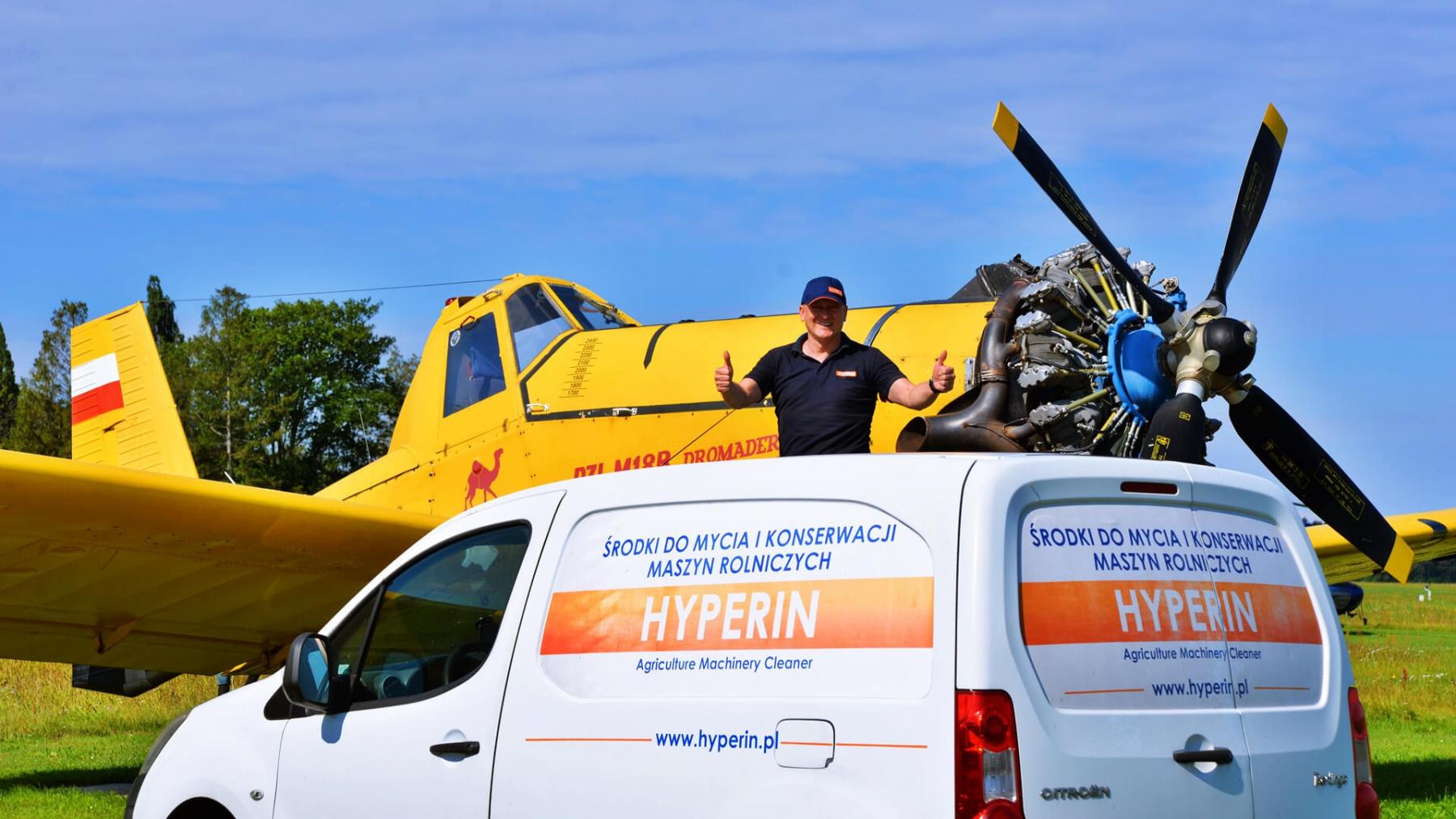 Marka Hyperin podjęła się ciekawego tematu a mianowicie umycia samolotu. Dromader to maszyna wykorzystywana również w rolnictwie do oprysku pól. Do tego zadania użyliśmy środka myjącego do maszyn rolniczych Hyperin Agri. Produkt świetnie sprawdził się do tego zadania. Wszelkie złogi zostały zmyte, a maszyna po skończonym procesie mycia swobodnie wzbiła się w powietrze. Teraz śmiało można rzec, że Hyperin sprawdza się jako środek do mycia samolotów.