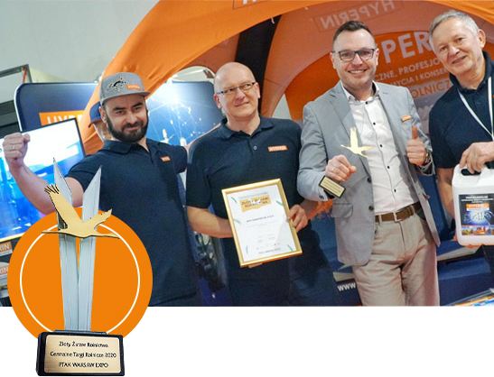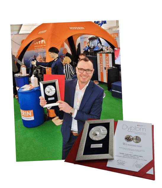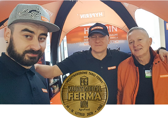 W lutym 2020 roku w Łodzi, na Międzynarodowych Targach Ferma, marka Hyperin została nagrodzona po raz kolejny! Nagrodę jaką był złoty medal Fermy 2020, znów otrzymał nasz innowacyjny produkt do mycia maszyn i sprzętów rolniczych – Hyperin Agri. Został on najlepszym produktem targów! Dla całego zespołu marki Hyperin, który wytrwale pracował nad skutecznością i wyjątkowym działaniem produktu, to wielka radość ale też i duma. Dziękujemy za zaufanie i docenienie naszych produktów jak i samej marki. Dzięki takiej motywacji Hyperin nie zatrzymuje się ani na krok!