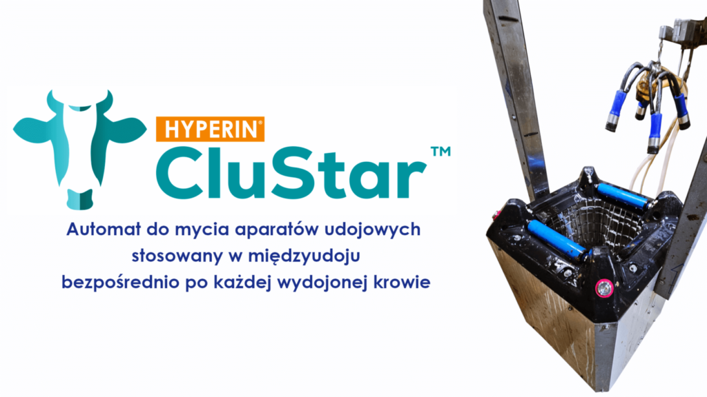 Innowacyjnym rozwiązaniem aktualnie jest Hyperin CluStar. Automat, który dołożony do rutyny udojowej mocno ogranicza warunki do swobodnego wzrostu kolonii bakteryjnych. Uniemożliwia tworzenie się trudnego do zwalczenia biofilmu. Stosowany bezpośrednio przed użyciem aparatu udojowego na kolejnej krowie, wyklucza problem zakażeń krzyżowych. Jest to jedyne rozwiązanie do mycia aparatów udojowych w między udoju, stosowany po każdej wydojonej krowie.